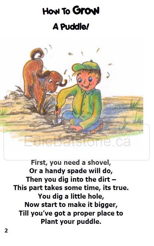 How To Grow a Puddle Preview Scroll left or right through Edie's book Preview using the Previous and Next Buttons below. How to Grow a Puddle Preview Continue Shopping
