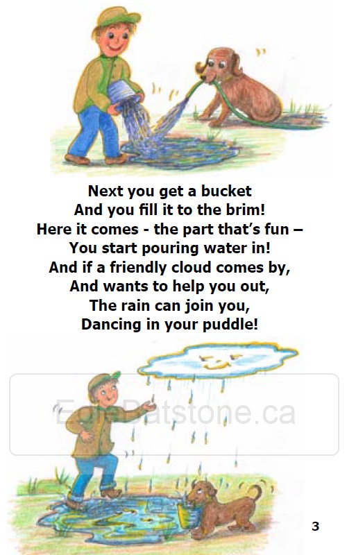 How To Grow a Puddle Preview Scroll left or right through Edie's book Preview using the Previous and Next Buttons below. How to Grow a Puddle Preview Continue Shopping